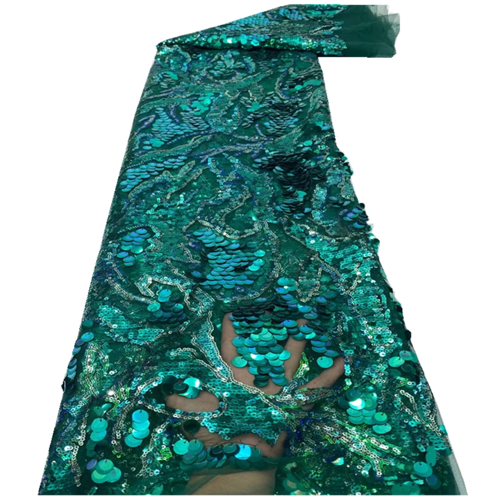 Green African Tulle Lace Fabrics With Sequins Embroidery French Lace Fabric 2021 High Quality Wedding Lace Sewing HX-200